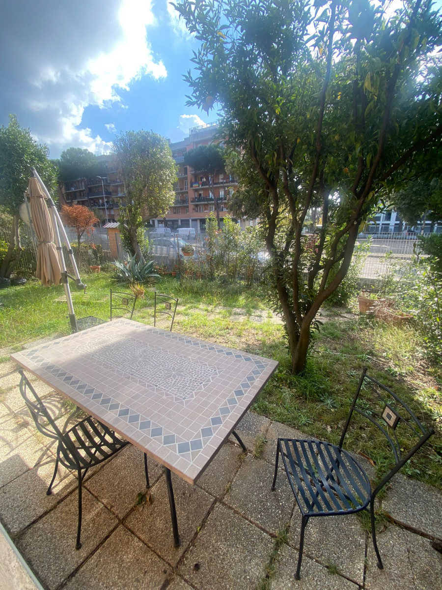 Ampio bilocale al piano terra con giardino privato, posto auto in garage e cantina.